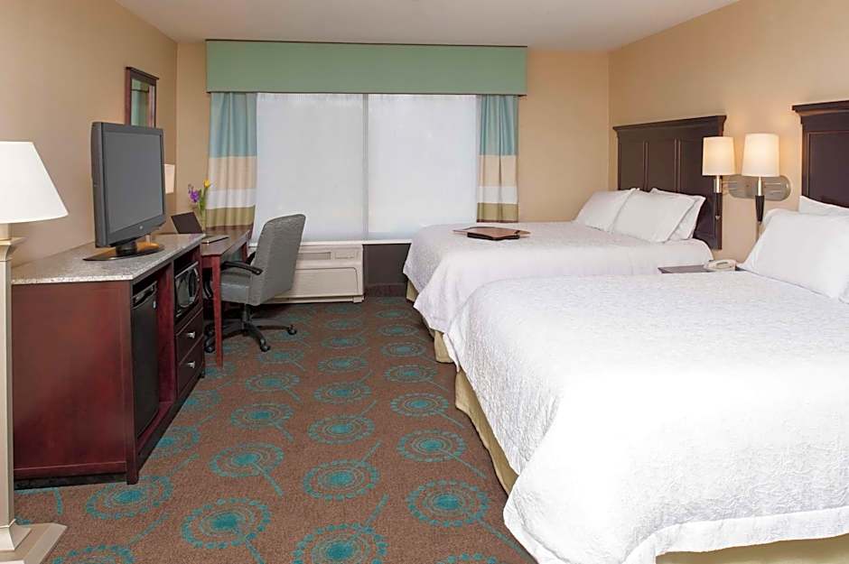 This spacious suite features a small seating area with sofa bed, chair, and ottoman. A microwave and small refrigerator are also included.